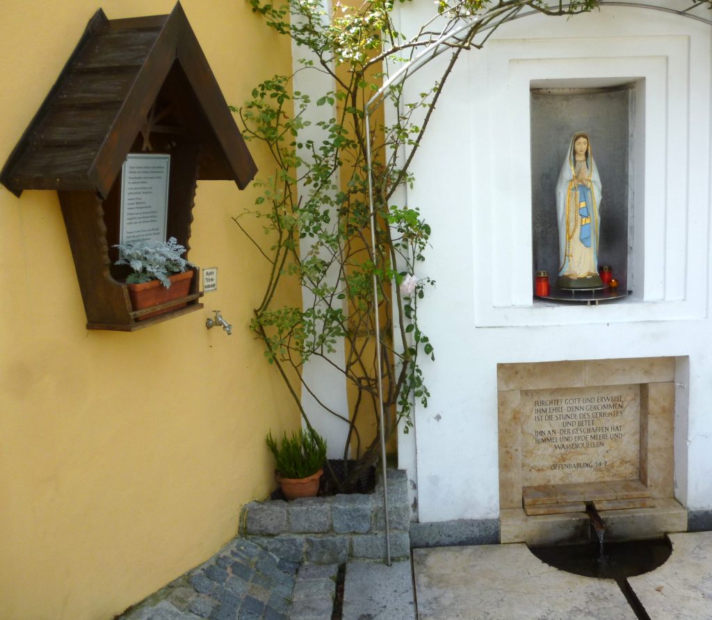 Danach ging es auf einem abwechselungsreichen Pfad durch Wiesen und Mischwälder zur Wallfahrtskirche Frauenbründl . Das ist ein Ort der Ruhe und Besinnung mit einer Quelle, der Heilkräfte zugesagt werden.
